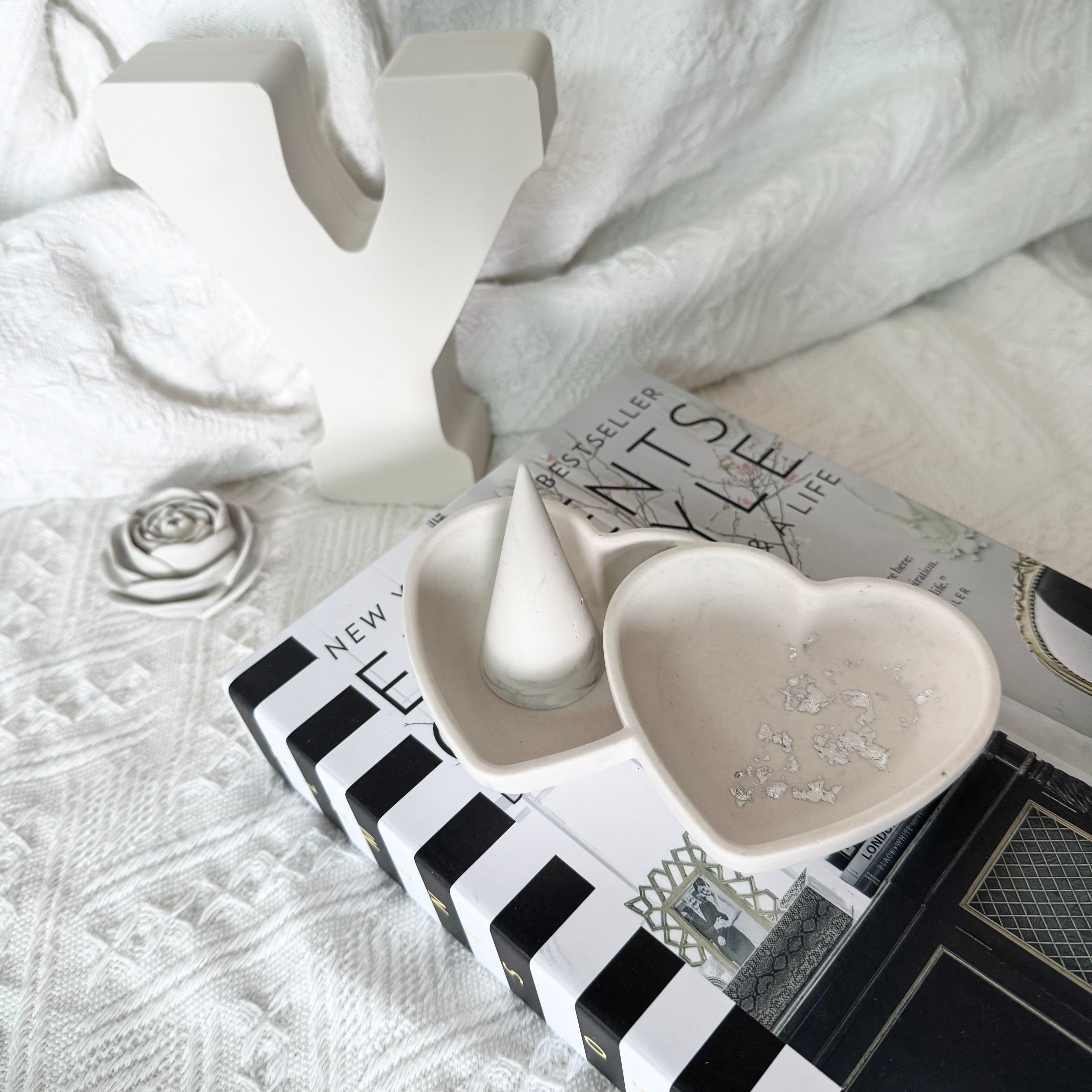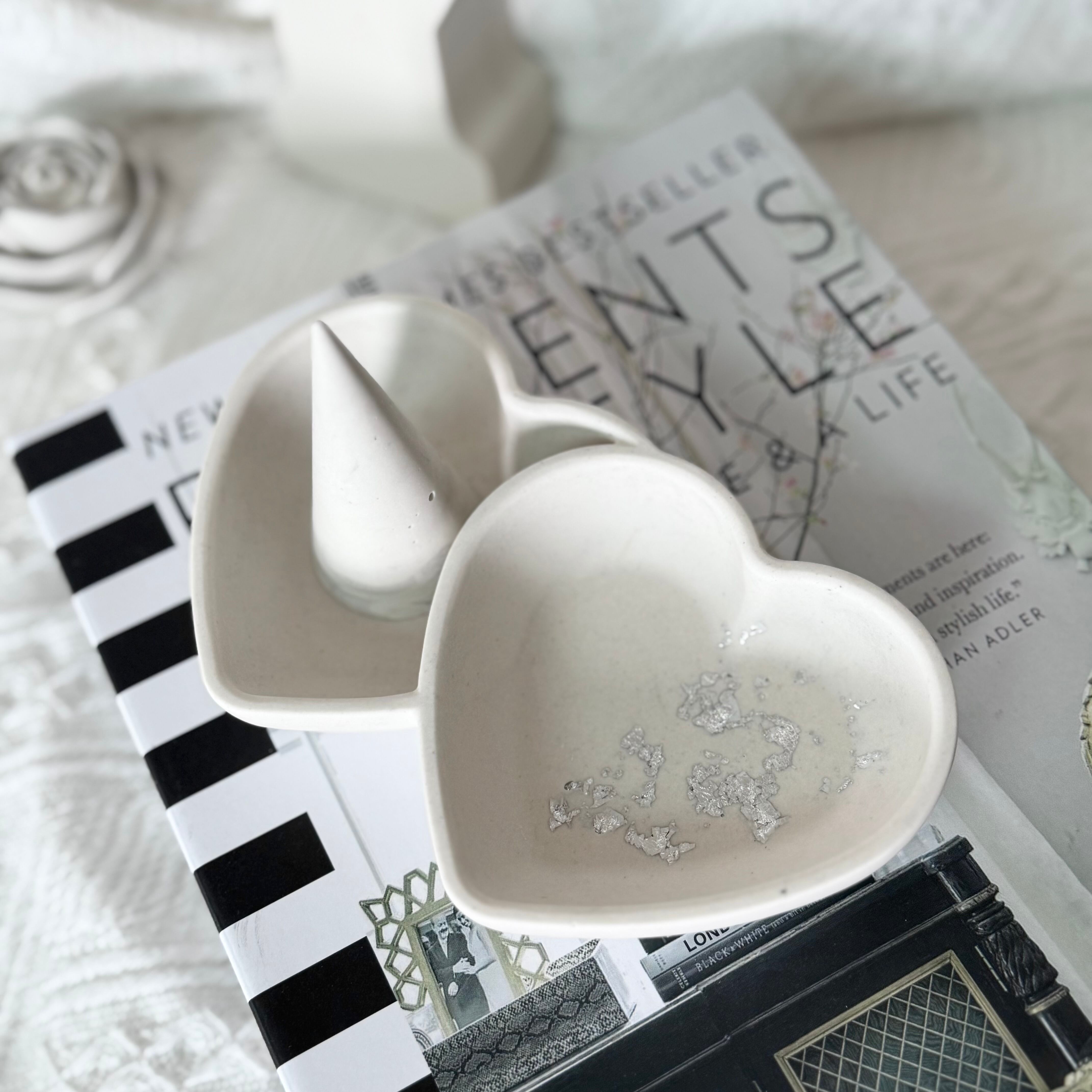二つのハートが寄り添うように並んだ、ロマンチックなアクセサリートレイ。
