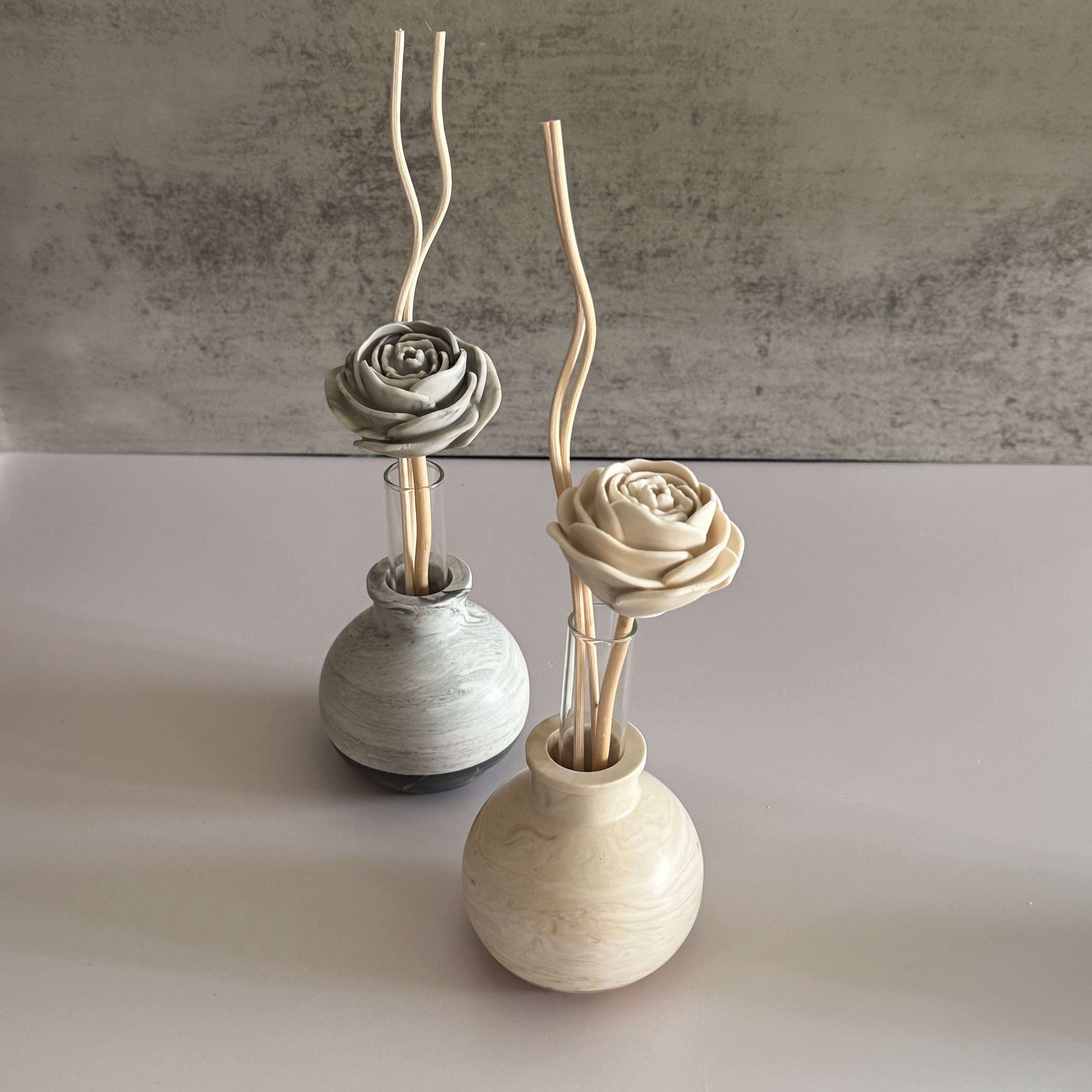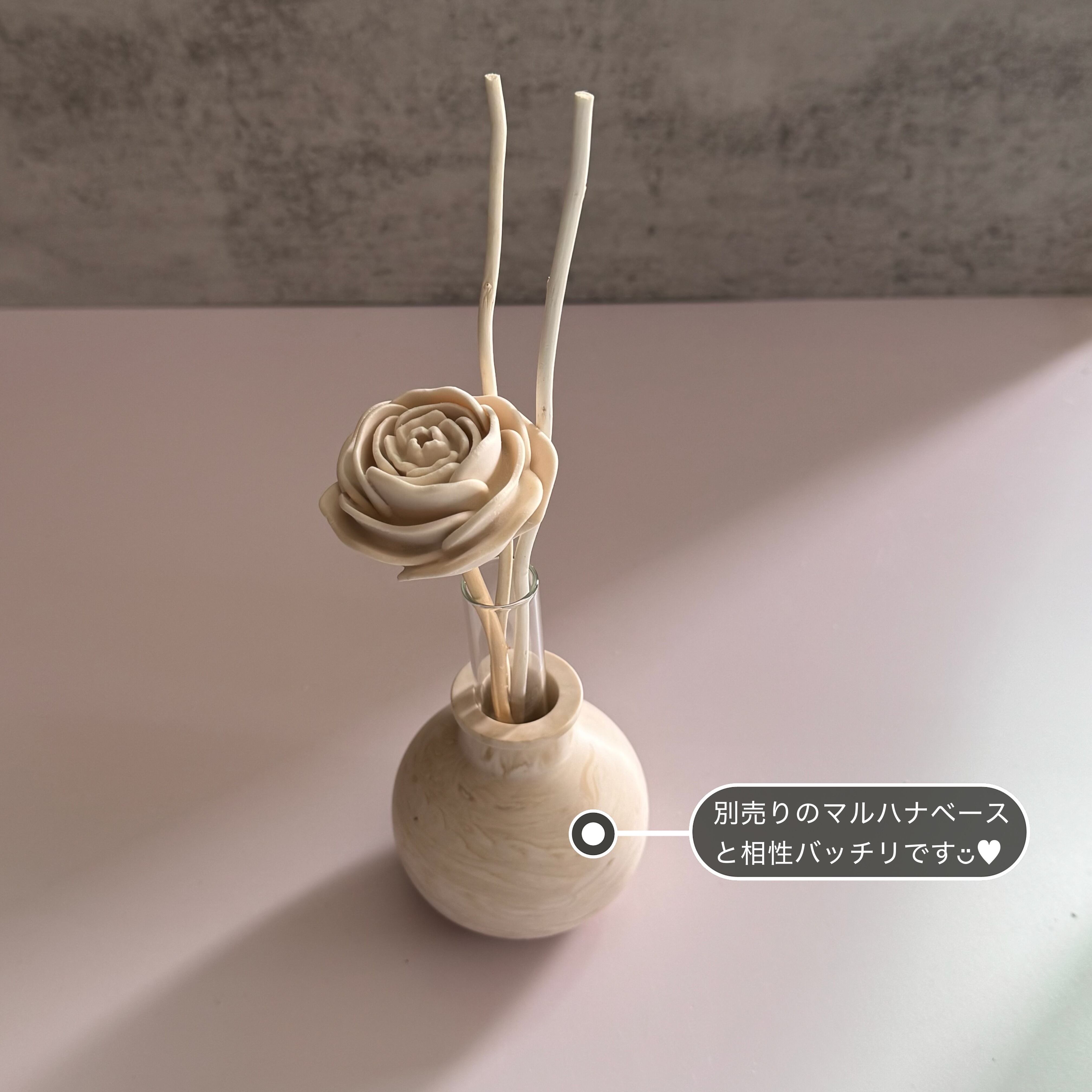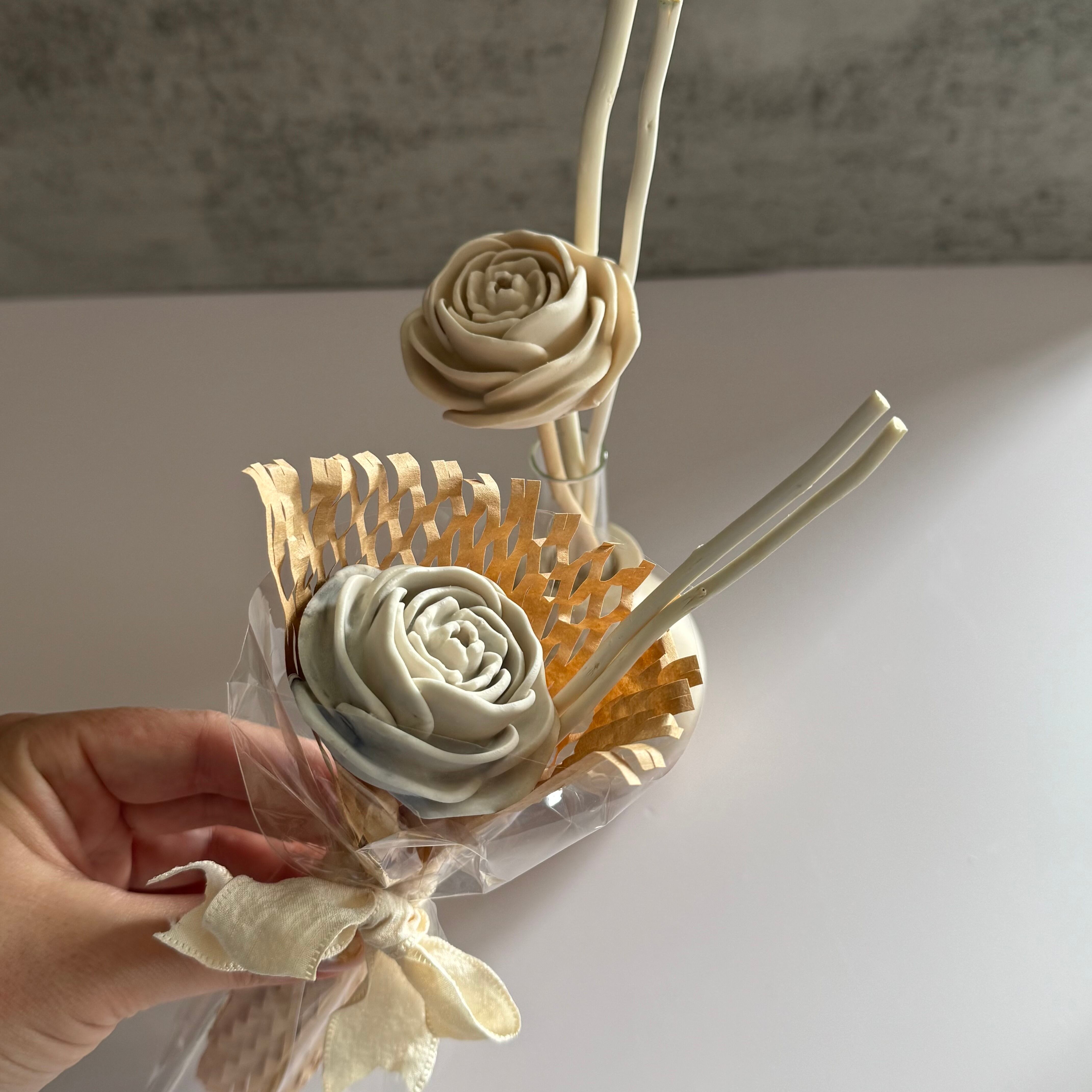 ジェスモナイト製のローズを付けたフレグランスディフューザースティックです。