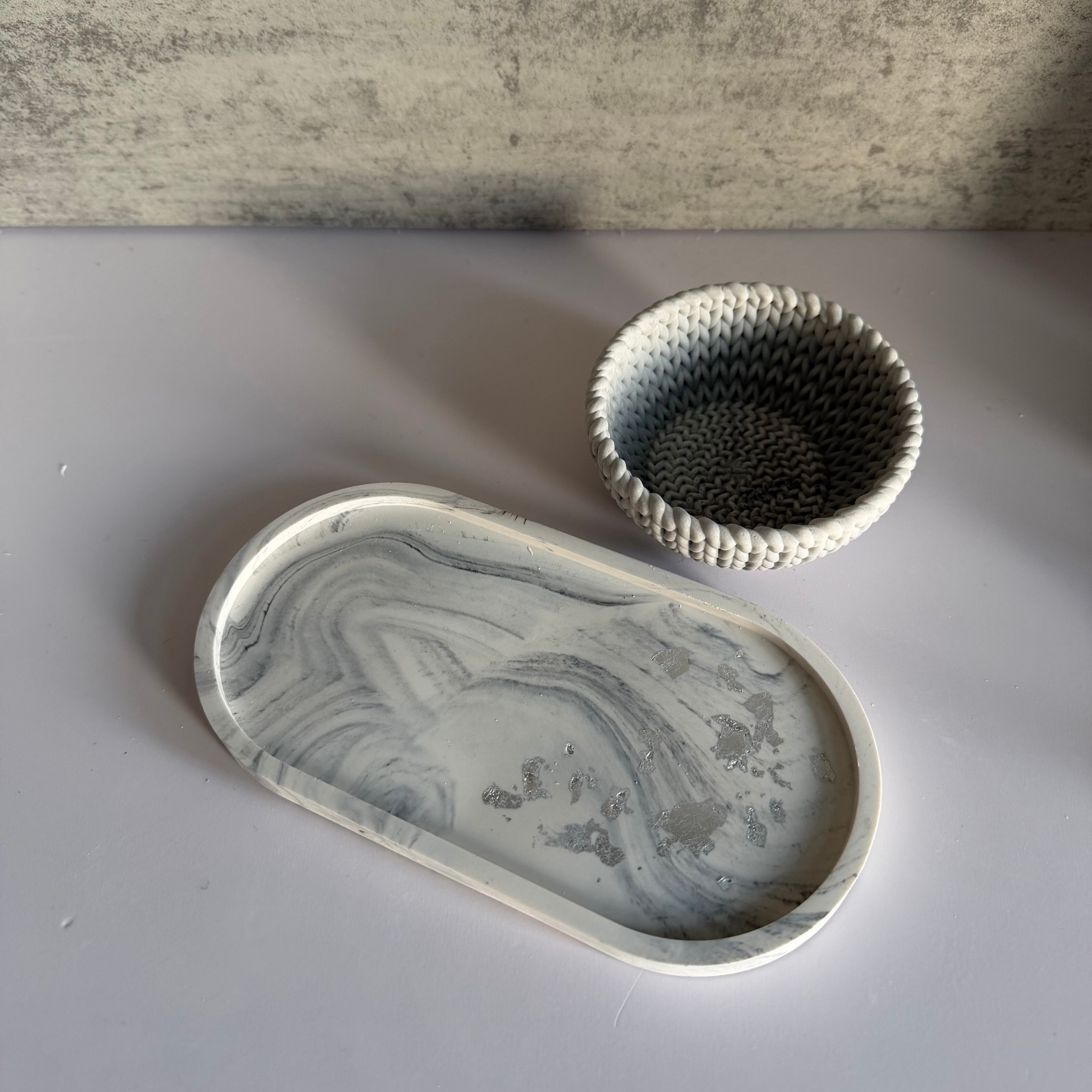 ニットテクスチャーボウル&トレイ(グレー&グレーマーブル)ー編み目の優しさを暮らしの定位置にー